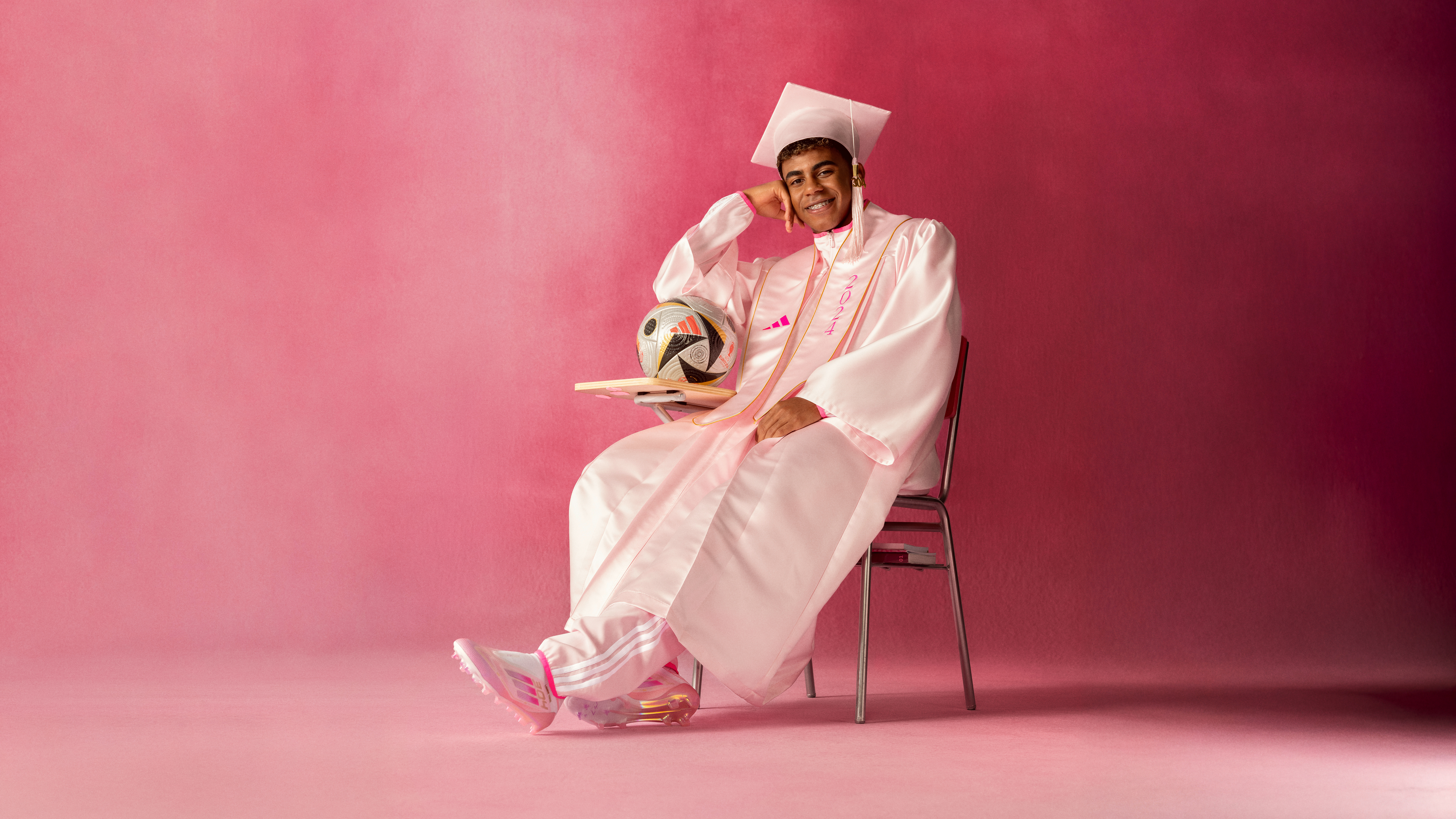 在今年 2 月,adidas 為致敬 Lamine Yamal 在 2024 年歐洲盃登頂歐洲足壇的輝煌時刻,更特意推出了首款簽名戰靴——限量版 F50 LY304 ,這款鞋款以他最愛的粉紅色為主色調,腳背外側的 F50 標誌被金色的家鄉郵政編碼「304」後三位數字取代,更是向見證他成長的社區致敬,在球場上展現個人風格。