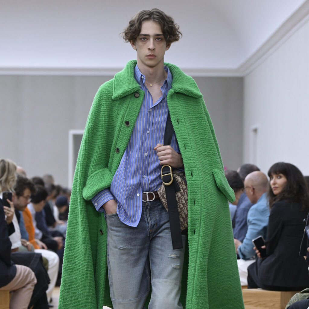 在品牌一貫淡雅之間,設計概念始終如一。材質方面,系列透過多個細節進行扭轉,皮革鏤空編織勾勒肩膊線條,或者變成鏤空格紋襯衫,展現透亮效果,也為穿搭增添時尚感。馬鞍靈感的雙行明線成為標誌性細節,高科技帆布製成外套、寬鬆短版長褲與露趾涼鞋,完美修飾身形比例之餘,又能帶出貴公子的低調奢華。就算是系列中相對休閒的款式,絲質斜紋布襯衫或錯位褶襇的混紡襯衫,依舊大方得體而輕盈舒適。